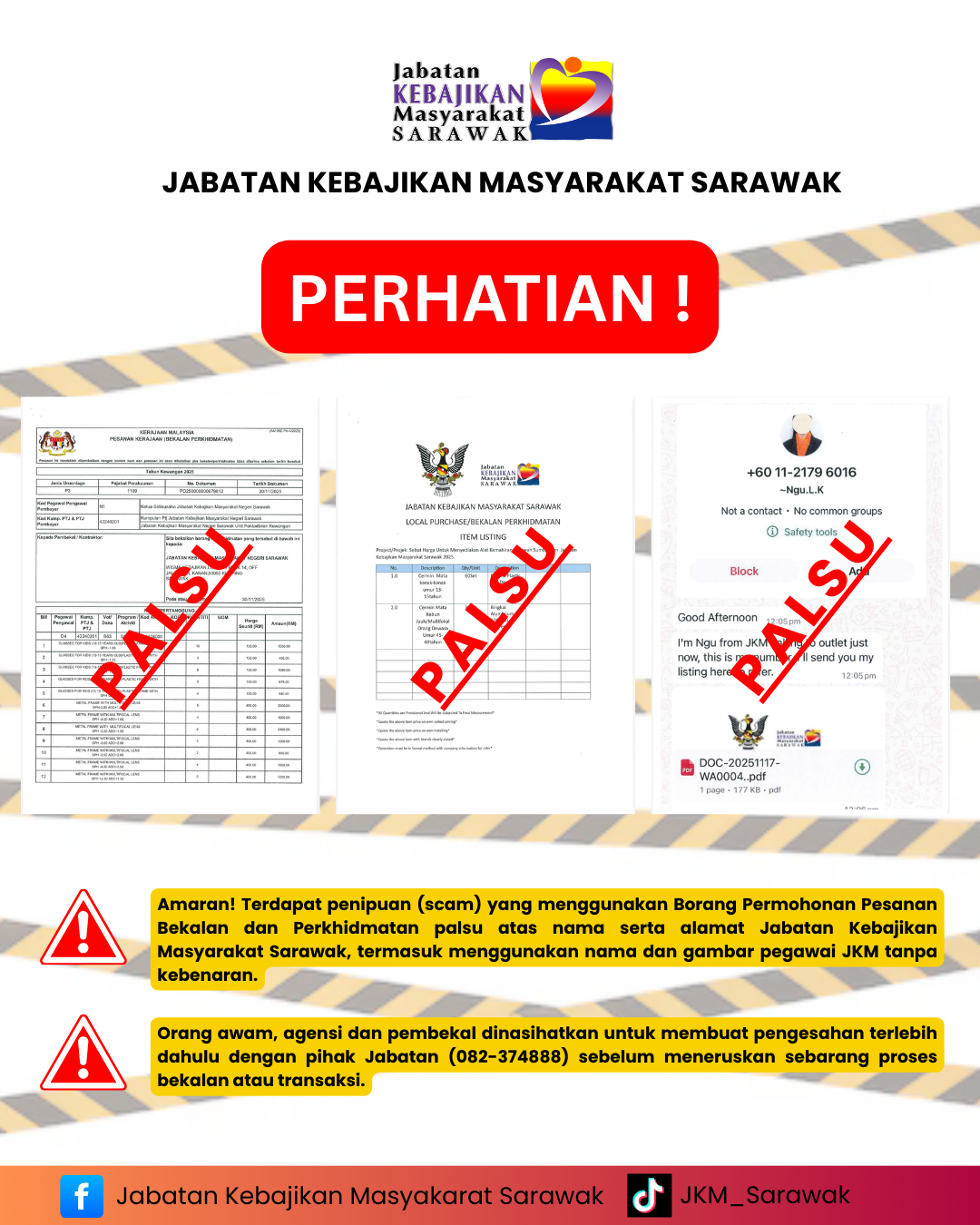 ⚠️PERHATIAN! PENIPUAN MENGGUNAKAN NAMA JABATAN KEBAJIKAN MASYARAKAT SARAWAK.